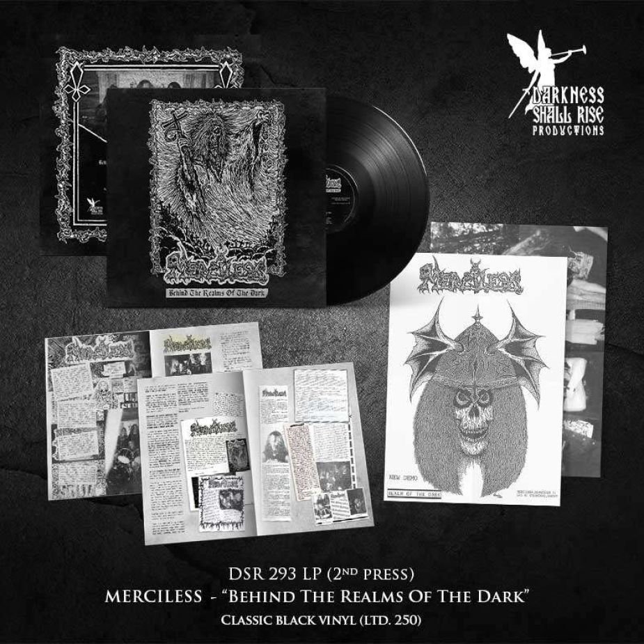 MERCILESS’ first album The Awakening broke forth into the world in 1990. It also happened to become the very first release on Euronymous’ then newly founded infamous label Deathlike Silence Productions. Prior to their legendary Death/Thrash masterpiece, MERCILESS cut their teeth recording two demos, Behind the Black Door and Realm of the Dark. Released in 1987 und 1988 respectively, both are naturally rather raw affairs but what they may lack in proficiency and sound quality, is made up for by unbridled ferocity and MERCILESS’ youthful enthusiasm.